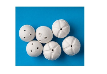 多孔陶瓷填料是在惰性瓷球基礎上開發的新產品,它以球體直徑為軸心進行開孔,既具有如惰性瓷球那樣一定的機械強度、化學穩定性和熱穩定性,又增加了比表面積和空隙率,從而增加了物料的分散性和通量,降低了系統的阻力。 開孔瓷球填料廣泛應用於石油、化工和天然氣等行業替代惰性瓷球作催化劑的支撐覆蓋的墊層材料和充當塔填料使用。
